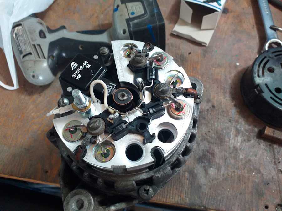 Здесь всё понятно и очевидно. Вообще узел легче ремонтируется, когда он предварительно снят. Это обусловлено тем, что все элементы перед глазами, можно поворачивать генератор, как удобно мастеру.