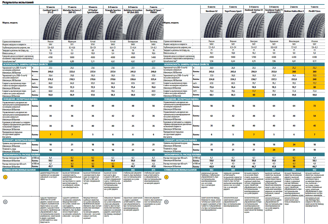 Рейтинг летних шин «За рулем»