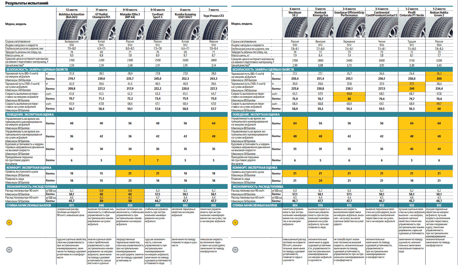 Результаты теста летних шин R15 «За Рулем»