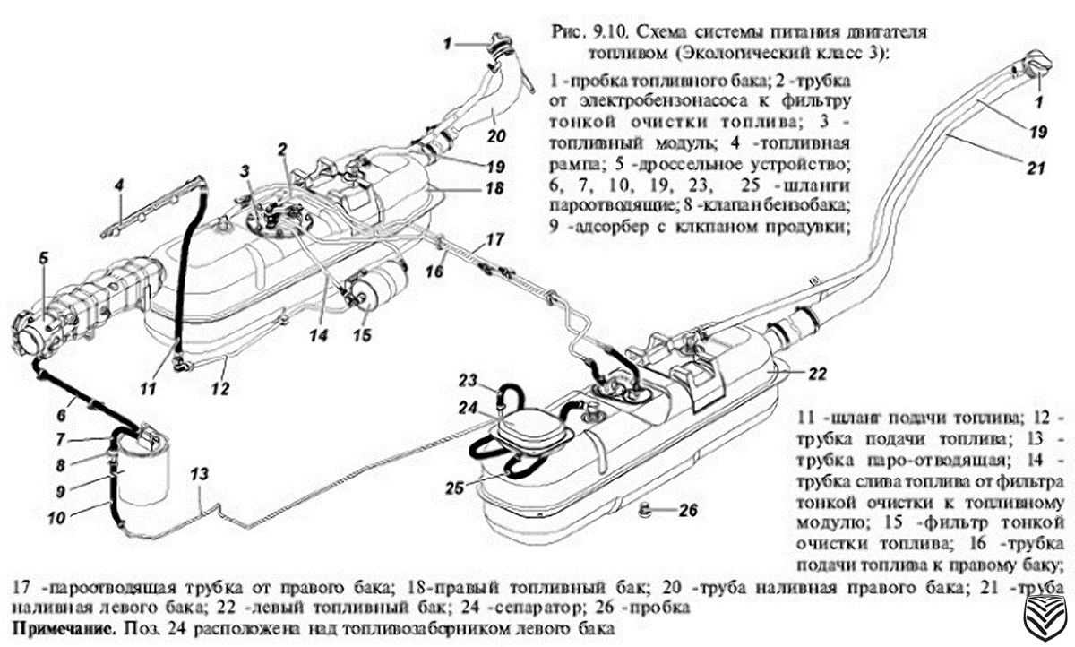 - топливопровод предполагает наличие специального тройника между силовым агрегатом машины и правым элементом топливной системы;