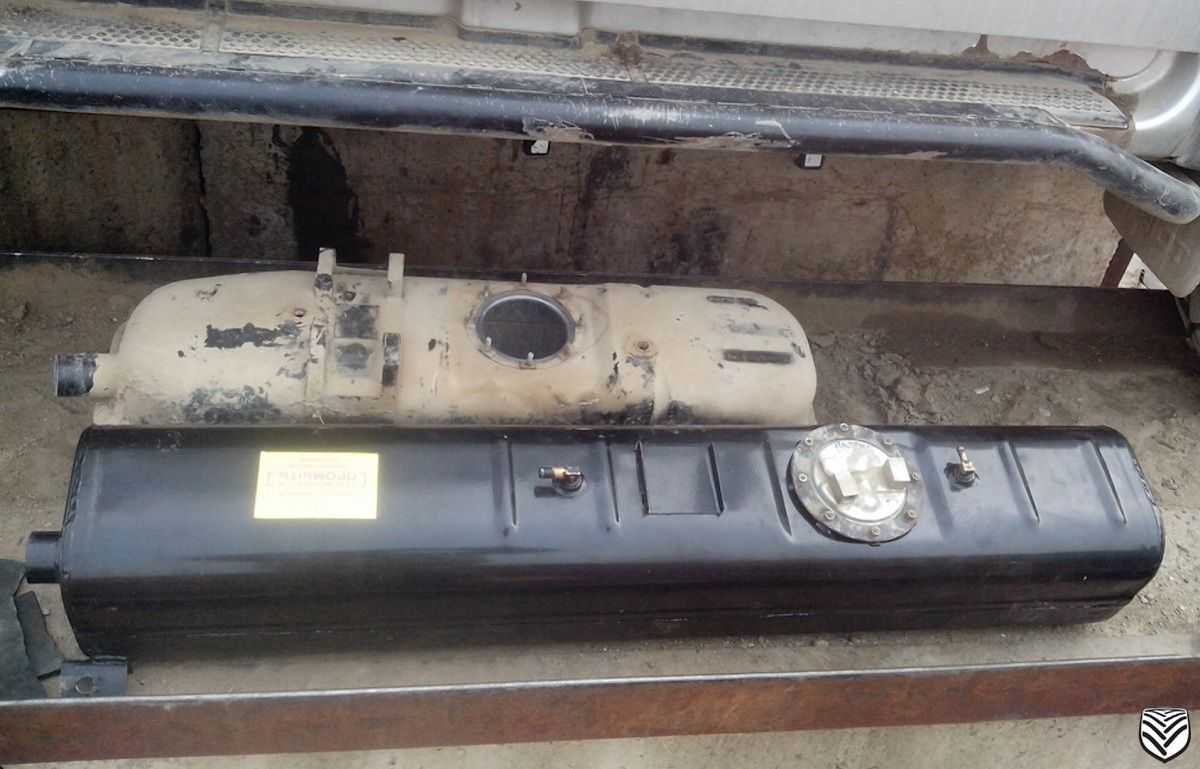 - Металлические баки для топлива, закрепленные на лонжеронах рамы. Каждый резервуар оборудован индивидуальной горловиной, выведенной на боковую часть кузова (лючок закрывается металлической крышкой). С 2021 г. стала использоваться пластиковая емкость увеличенного объема, на машине осталась только одна заправочная горловина.