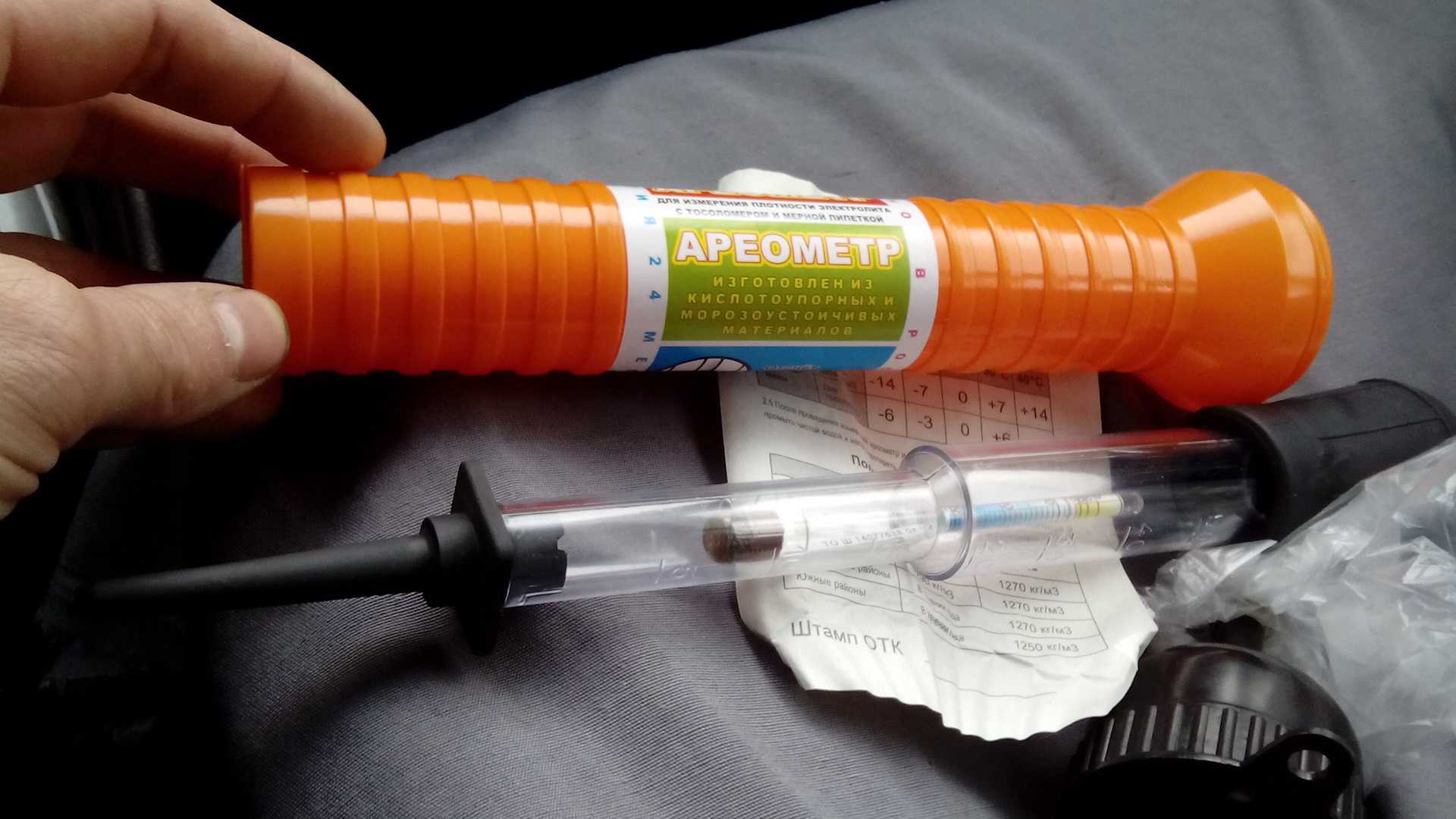 Проверка заряда АКБ при замере плотности электролита